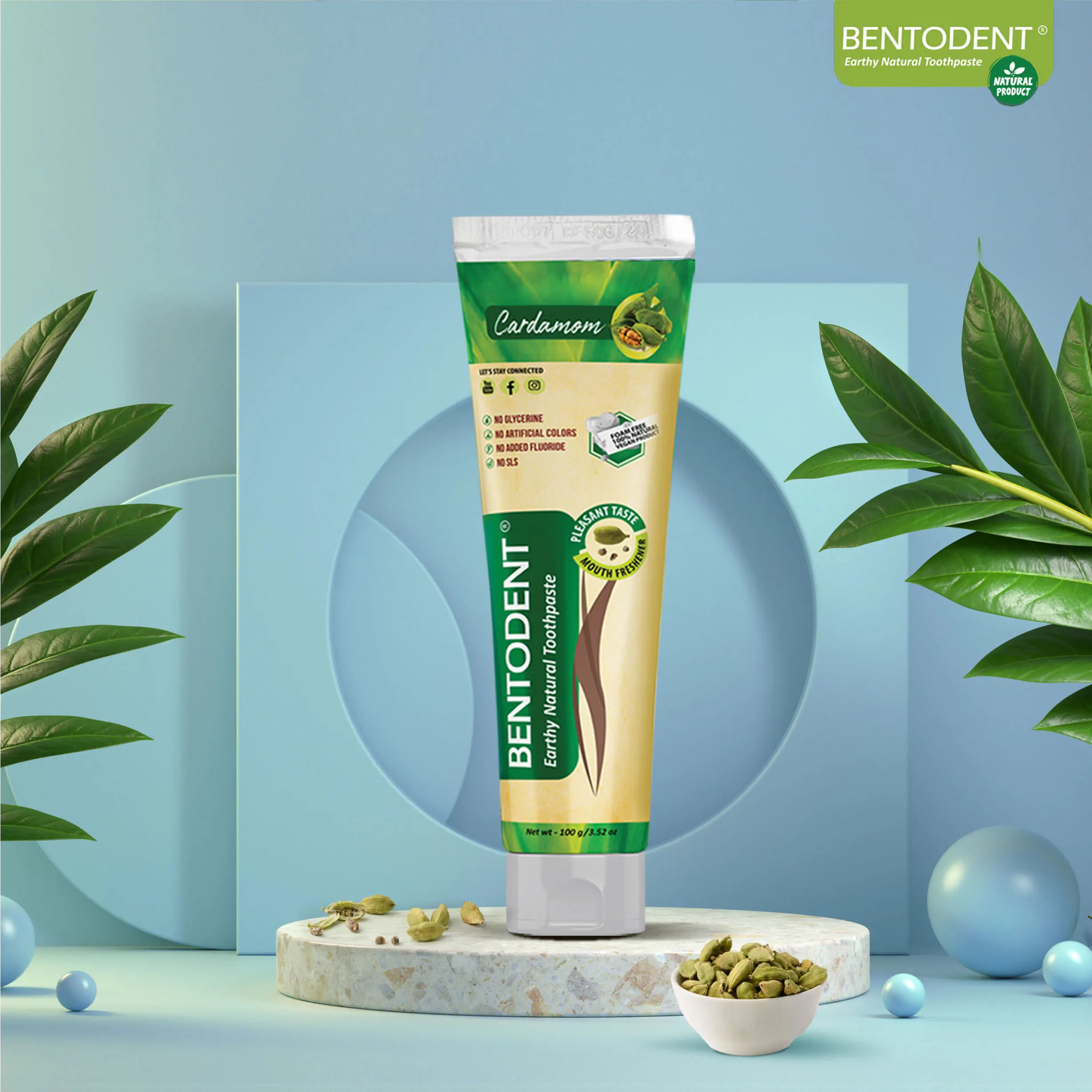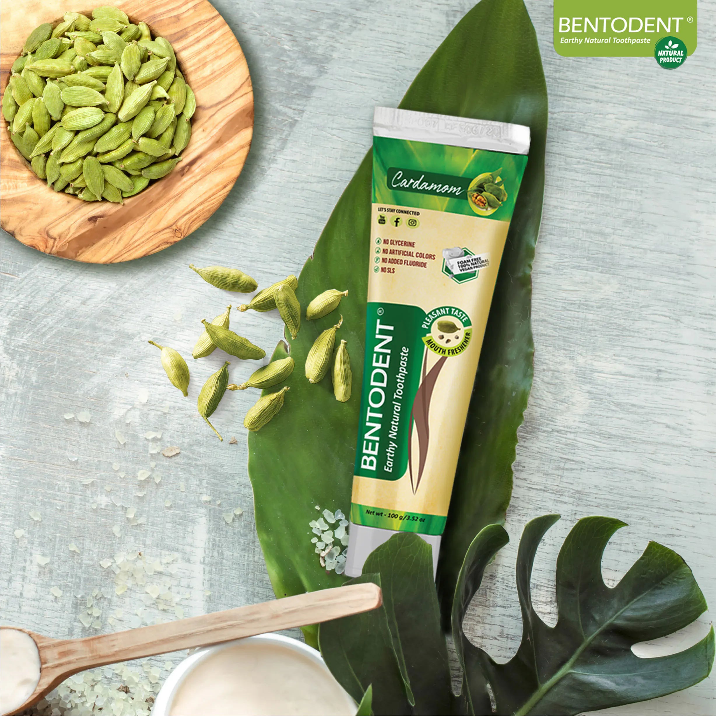 Bentodent Calcium Bentonite Clay Toothpaste - Cardamom -Natural,Fluoride Free, Vegan, Travel- 100 gm